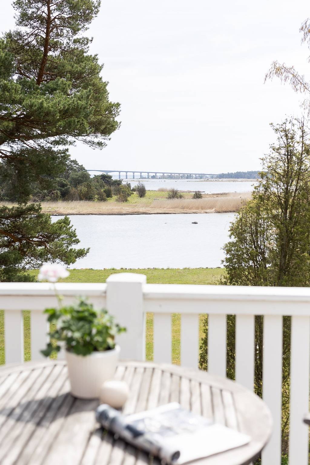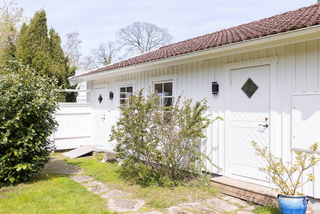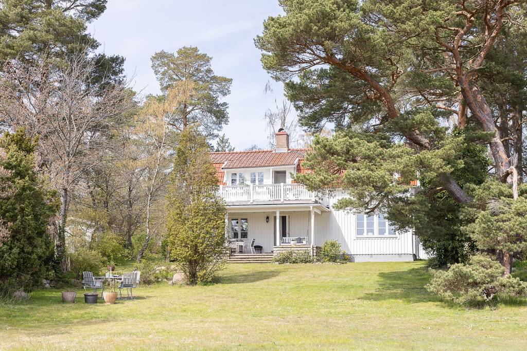 Südschweden, Kalmar – Diese große, elegante Villa mit schöner Küche, offenem Kamin, Veranda und großem Balkon sowie einer Garage als Nebengebäude, liegt in Ortslage, nur 40 m von der Ostsee. Es liegt auf einem üppigen, gepflegten Garten-/Naturgrundstück mit Rasen, vielen verschiedenen Bäumen und Sträucher, und hat einen wunderschönen Blick auf die Ostsee. Durch die großen Bäume hat man hier einen guten Sichtschutz vor den Nachbarn und kann trotz Ortslage die Ruhe und Privatsphäre genießen.